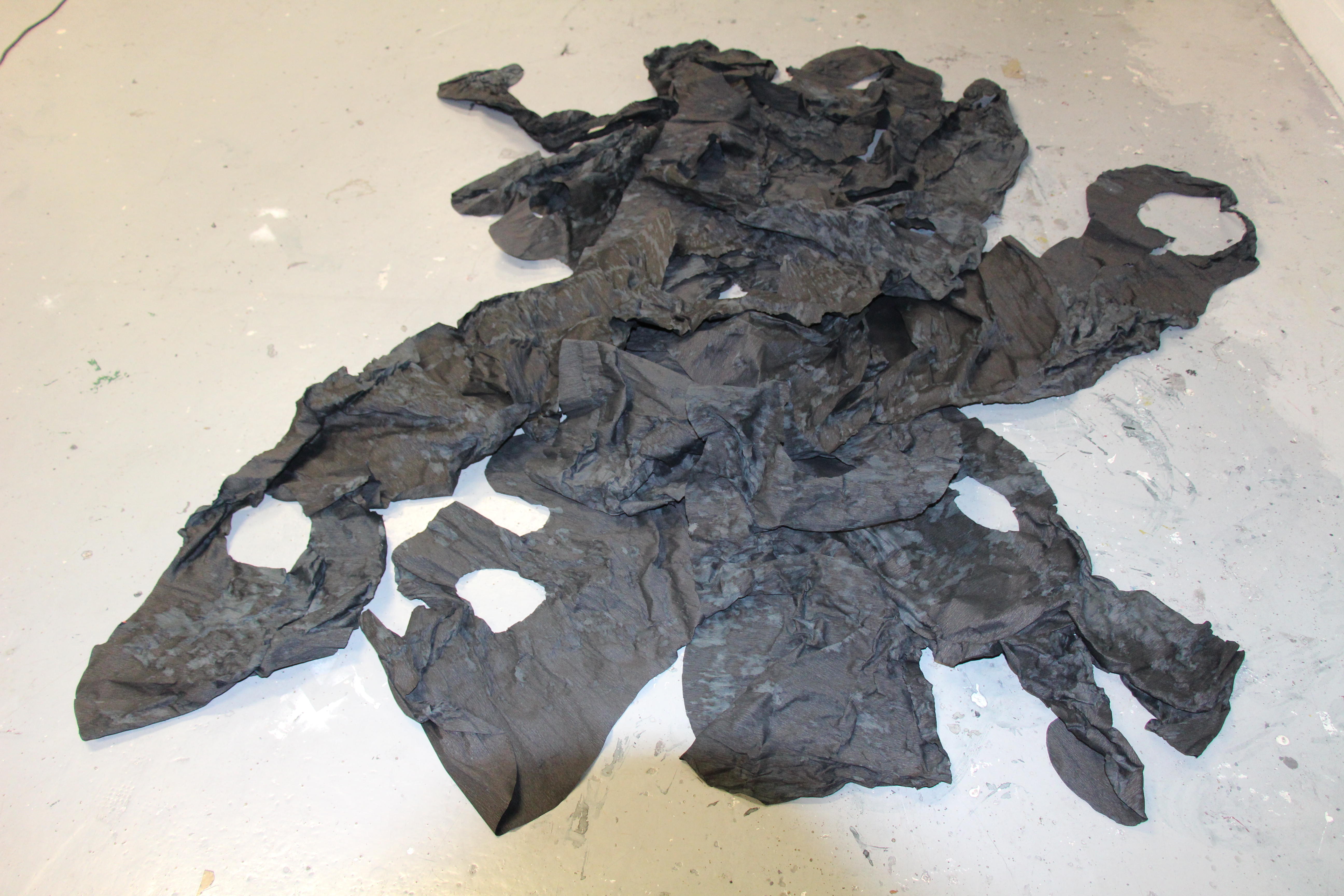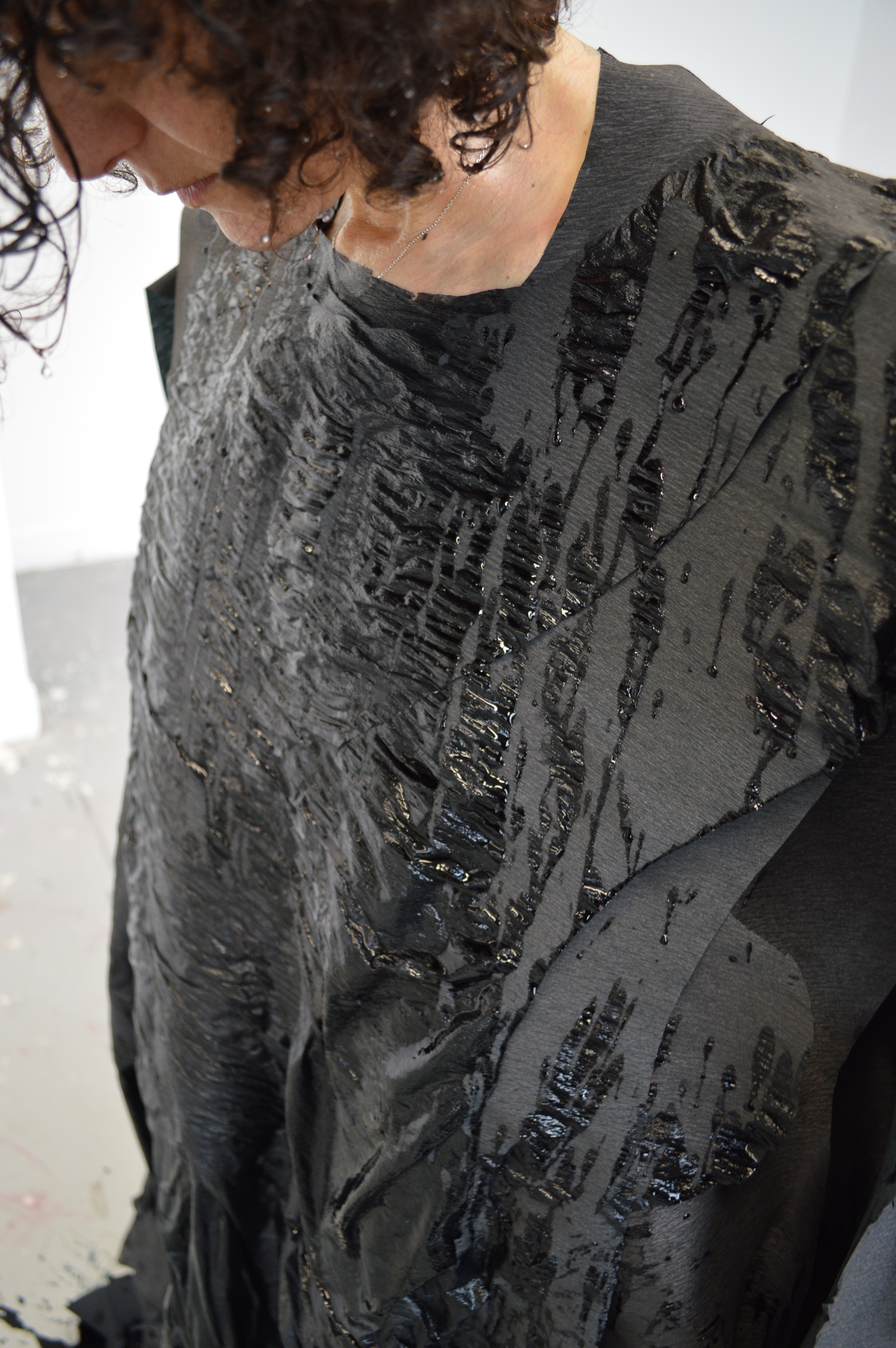 The work with its folds resembles a labyrinth. The folds physically replace my skin. Having nothing except my body, I take refuge under my skin. To protect myself, I created layers of skin to replace a place of refuge (house, shelter, roof, ...). On the other hand, the labyrinth form is a metonymy of the search for oneself, because it requires a continuous wandering, a renunciation of the knowledge of the place where one is.